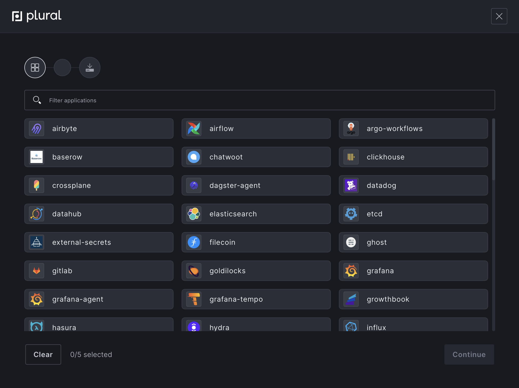 Once you've selected your applications, you can install Plural bundles using our interactive GUI. To start the GUI, run: