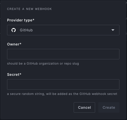 You can create this webhook at whatever scope you'd prefer. Depending on the scope, the permissions needed will likely vary. A simple place to start is just creating a webhook scoped to your plural up repository.